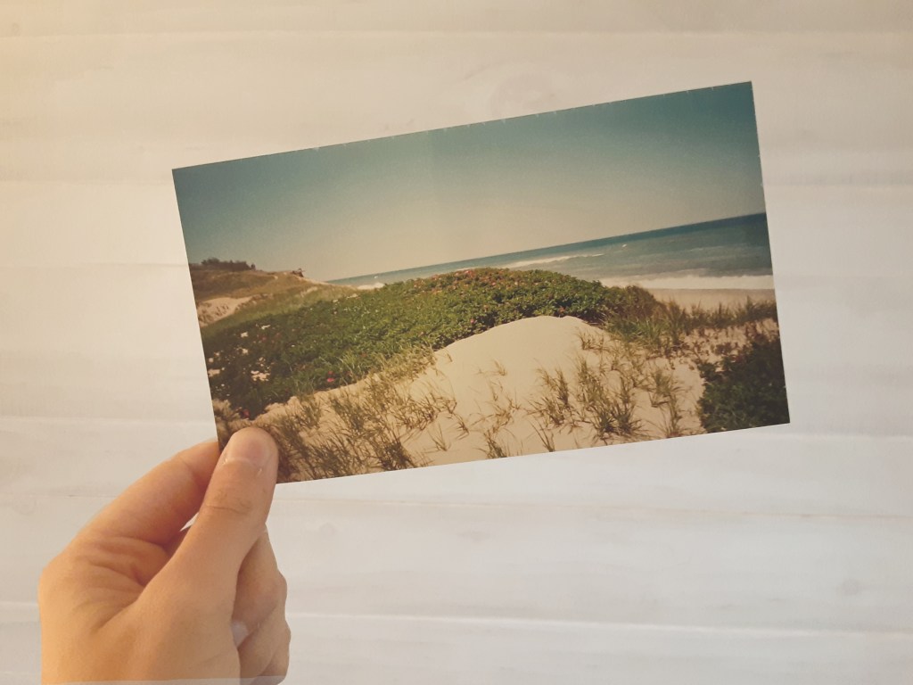 Before I got packing last week, I took Papa’s folders out of the big desk and settled into Nanny’s rocker to look through them. There were pictures of grassy dunes (and staircases down them, to the beach), of cottages with sailboats painted onto the shutters, of red fishing boats with striped buoys, of paths toward lighthouses and Nanny carrying a basket of picked flowers, her permed curls all blown to one side. Her smile looked like Dad’s.
