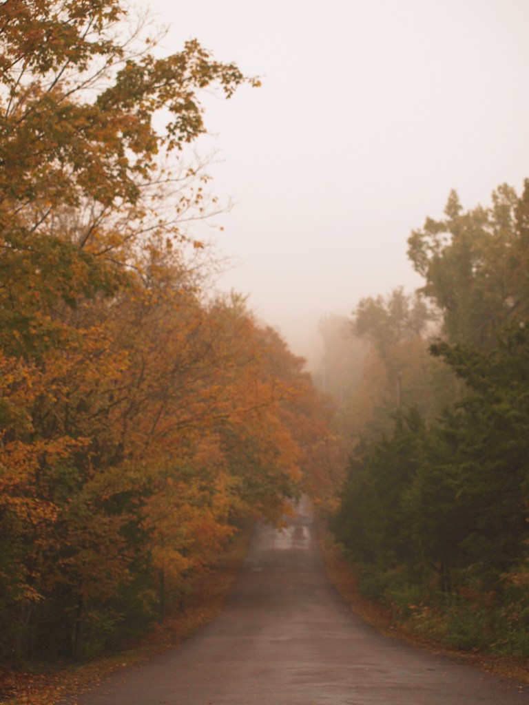 October on Edgewood — mist, color, cold, shoes squeaking on wet pavement