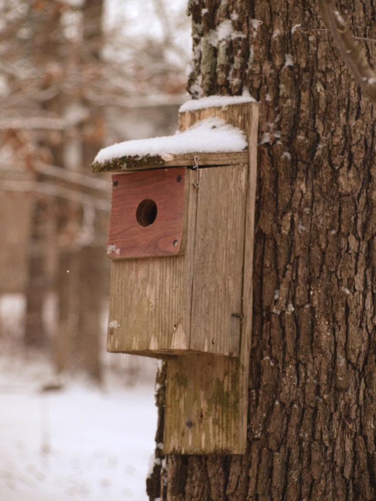A snowstorm hit last February, when I had to wade down Larry and Betty’s walk to the front door. The house was cool and dark, the plants thirsty. I stood filling a watering can at the kitchen sink and looked out to see chickadees playing on a red feeder. Tucked at the back of the house is a study with paneled walls made from barn wood, a stone fireplace, and an armchair in the corner, where the light came through the lattice windows. I poured water onto a big plant, while outside, the cedars were heavy with snow.