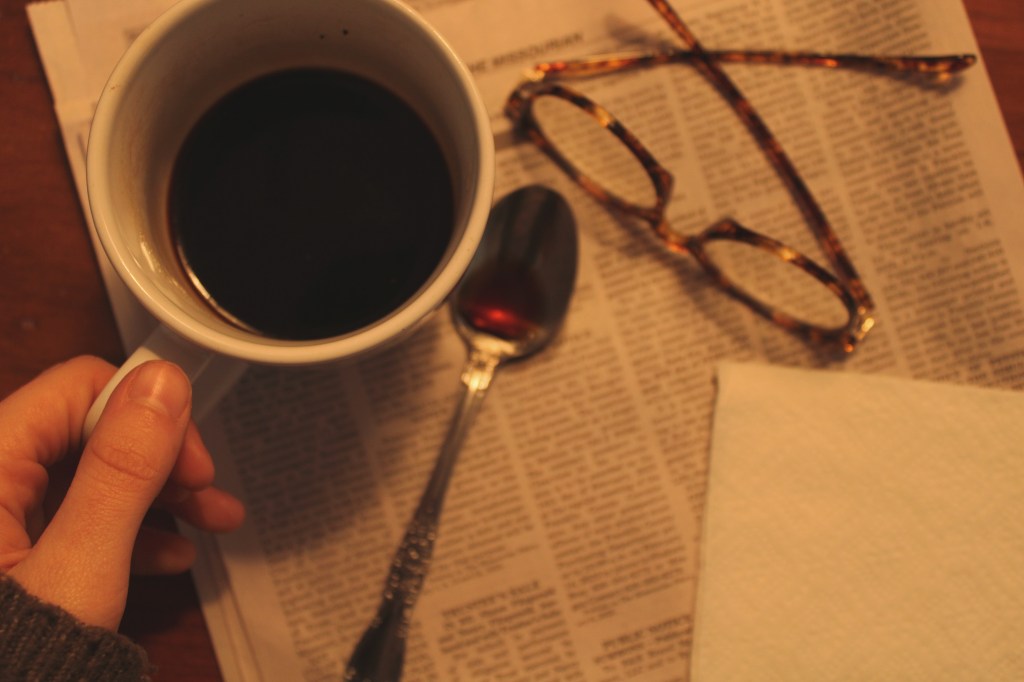 She had an elbow propped on the counter and her gray head in her hand. I was surprised when she carried her coffee over and sat in the armchair across from mine, with only a table between us— the kind of space that makes you feel like you should say something. It started when I looked over my shoulder to see a table of older folks with paper coffee cups and Bibles.