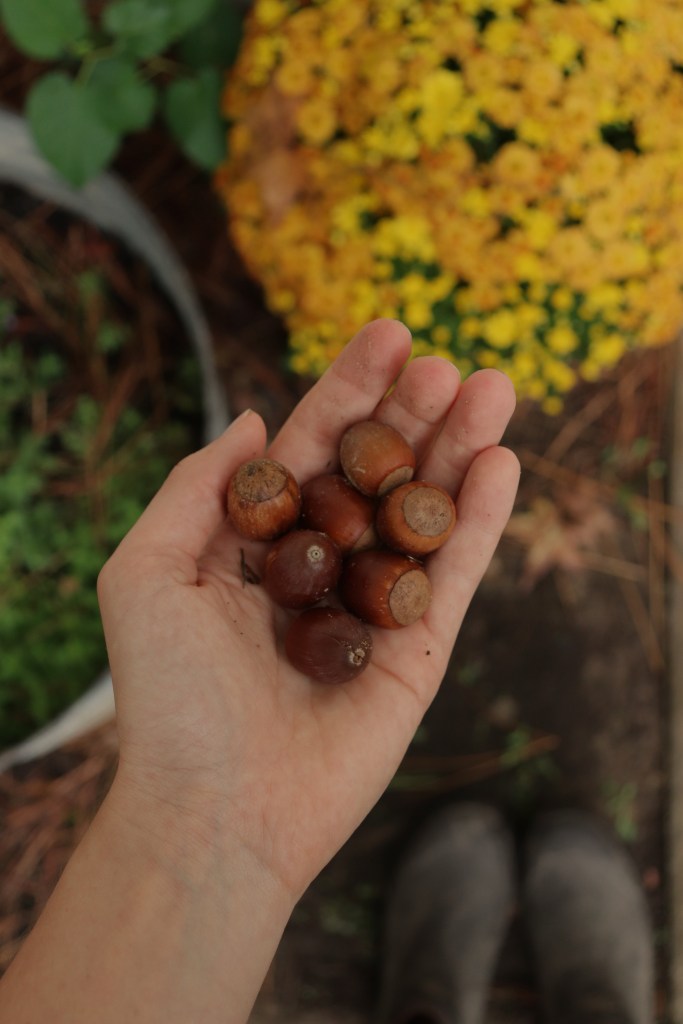 Lunch with Joe and Jill, and how she took home a few of our big acorns